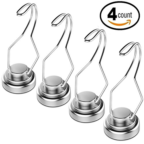 4 Pack Heavy Duty Magnetic Hooks 30lb Powerful Neodymium Refrigerator Magnet Hooks by Mecooa - Adjustable Swivel Utensils Hooks, Great for Home Kitchen Organization and Storage.