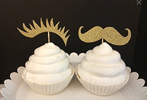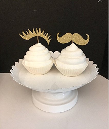 Set of 12 Staches or Lashes cupcakes, 6 Lashes and 6 Staches