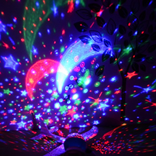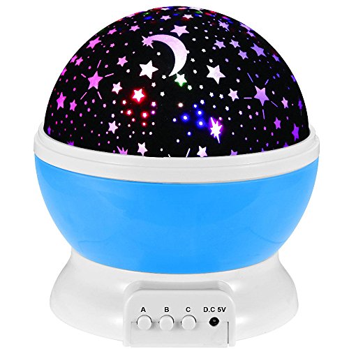 Star Projector Star Night Lights lamp Projector Star SKY Moon projector: 4 pcs LED beads of warm light, blue green red It match with 3 Push-Button (A B C)