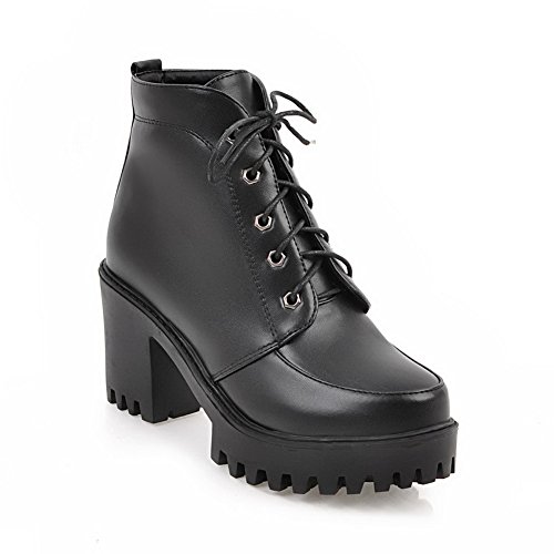 (BalaMasa)/Women's/Boots/DIRECT FROM USA/BalaMasa Womens High-Heel Lace-Up Platform Solid Round-Toe Urethane Boots ABL09691