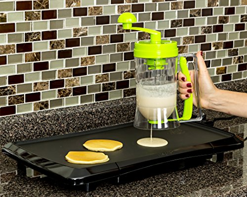 PERFECT PANCAKES, POURED TO ORDER! Our unique batter dispenser/mixer system is the perfect tool to upgrade your baking skills to pro status! Not just perfect for pancakes, our dispenser handles all your batter-based treats.