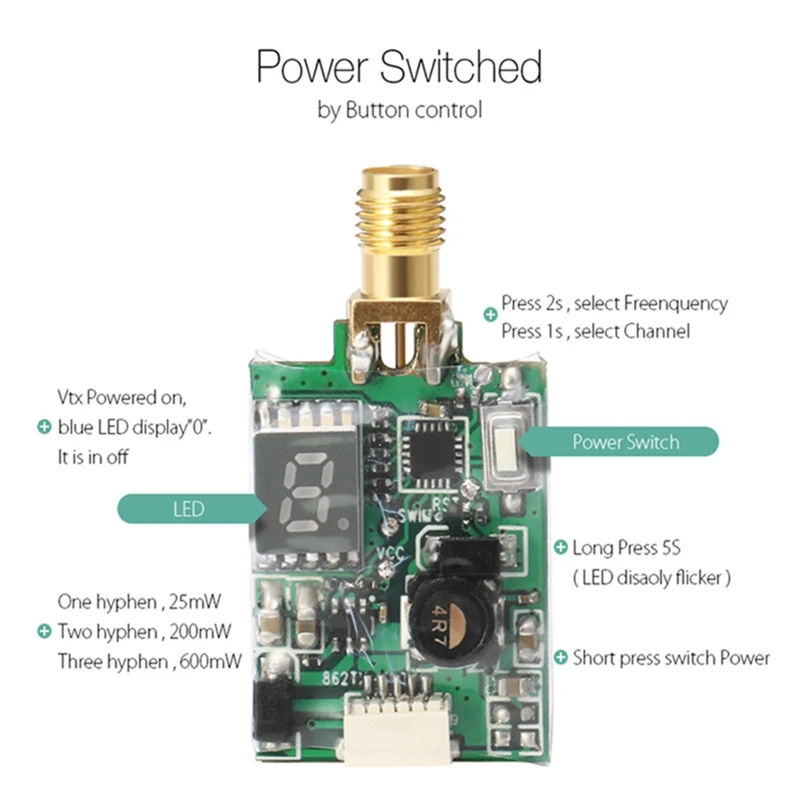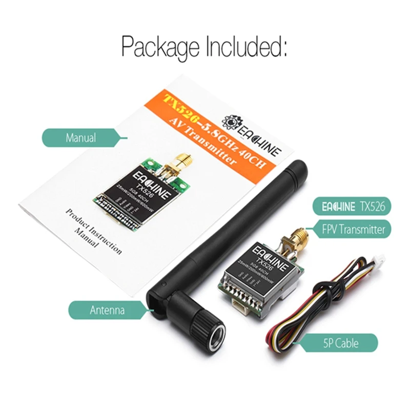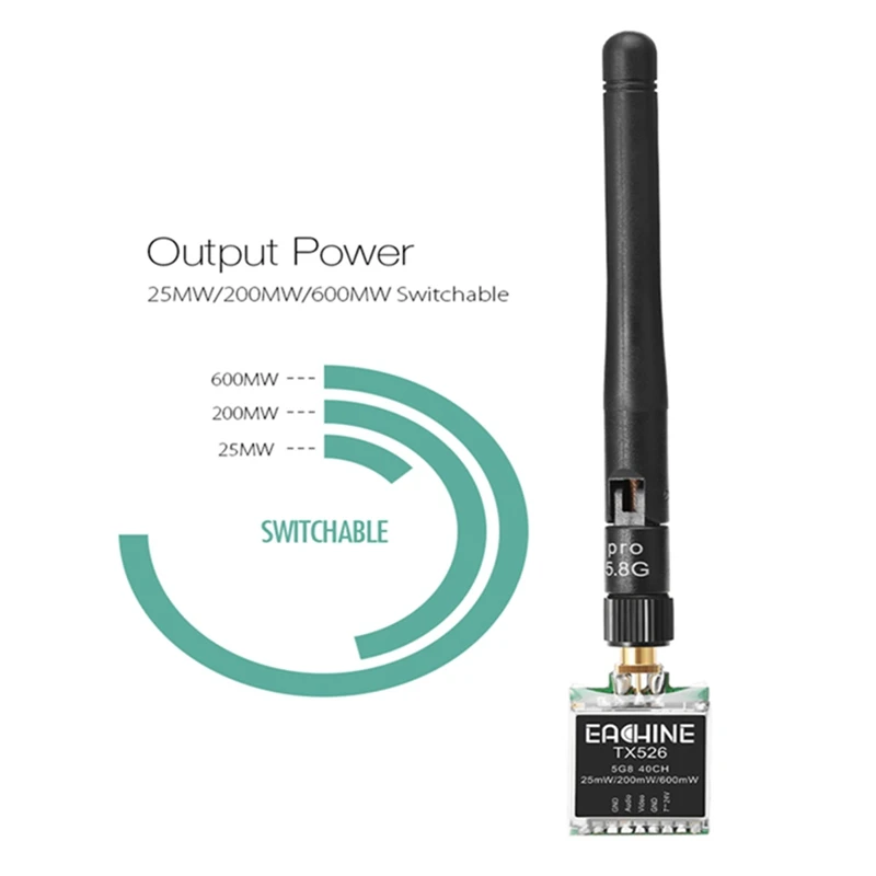 Eachine TX526 5.8G 40CH 25MW/200MW/600MW Switchable AV Wireless FPV Transmitter RP SMA Female For FPV Multicopter