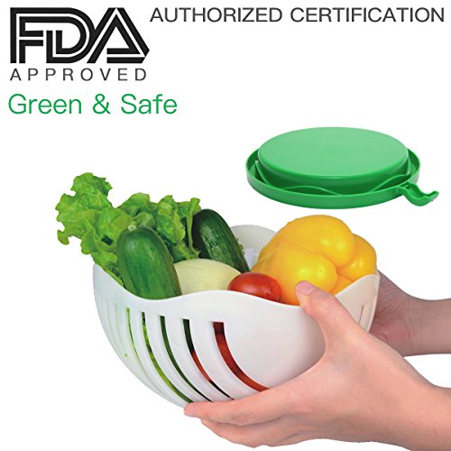 - SALAD CUTTER BOWL AS SEEN ON TV: With Ommani 60 second salad maker, a healthy and fresh fruit vegetable salad can be ready for your family in minutes, never have to worry cutting fingers, save you much time especially if you make salad often. Cutting board, strainer, salad slicer bowl are ALL IN ONE, quick rinse to clean up and dishwasher safe, you can spend more time on enjoying your salad rather than making salad and cleaning.