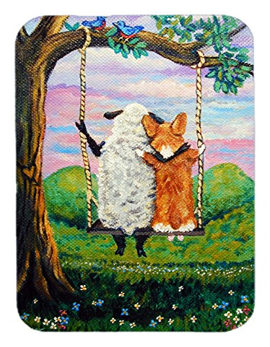 Caroline's Treasures 7439LCB "Corgi With Sheep Love Grows" Glass Cutting Board, Large, Multicolor
