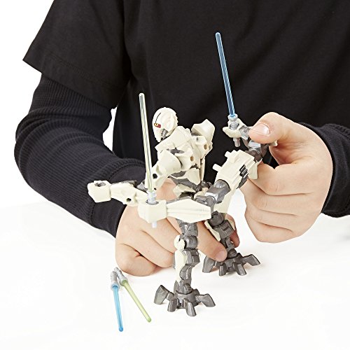 -. Binding : Toy -. Brand : Star Wars -. Color : Cream -. EAN : 0630509345670 -. Feature : Mix and match parts to create custom mash-ups / General Grievous figure has 9 points of articulation / Parts are compatible with other Star Wars Hero Mashers figures (sold separately) / Includes figure and 5 accessories. -. IsAdultProduct : 0 -. Label : Hasbro -. Manufacturer : Hasbro -. Model : B3669 -. MPN : B3669AS0 -. PackageQuantity : 1 -. PartNumber : B3669AS0 -. ProductGroup : Toy -. ProductTypeName : TOYS_AND_GAMES -. Publisher : Hasbro -. ReleaseDate : 2015-09-03 -. Size : Standard -. Studio : Hasbro -. Title : Star Wars Hero Mashers Episode III General Grievous -. UPC : 630509345670 -. Warranty : No Warranty