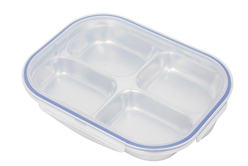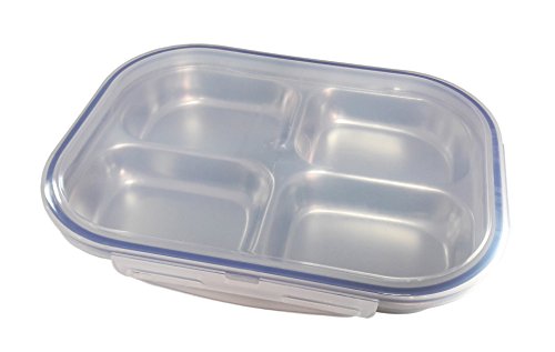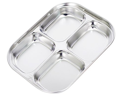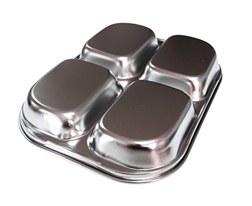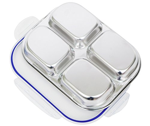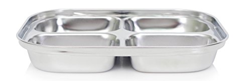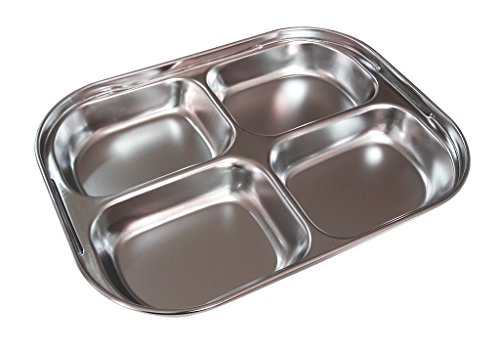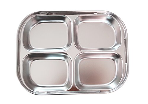 Set of 2 Stainless-Steel 9" 16oz 4 Sections Square Food Serving Storage Dish Tray Outdoor Platt...