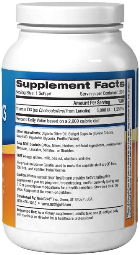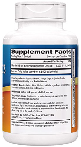 -. Title : Nutrigold Vitamin D3 5000 IU,(GMO-free, Preservative-free, Soy-free, USP Grade Natural Vitamin D in Organic Olive Oil)