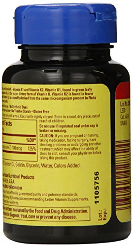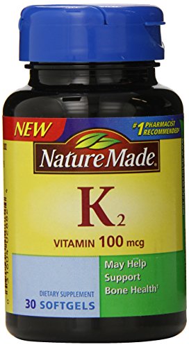 -. Binding : Health and Beauty -. Brand : Nature Made -. EAN : 0031604028824 -. Feature : May help support bone health / Easy to swallow soft gel / Take one softgel per day -. IsAdultProduct : 0 -. Label : Nature Made -. LegalDisclaimer : Actual product packaging and materials may contain more and/or different information than that shown on our Web site. We recommend that you do not solely rely on the information presented and that you always read labels, warnings, and directions before using or consuming a product. Content on this site is for reference purposes and is not intended to substitute for advice given by a physician, pharmacist, or other licensed health-care professional. You should not use this information as self-diagnosis or for treating a health problem or disease. Contact your health-care provider immediately if you suspect that you have a medical problem. Information and statements regarding dietary supplements have not been evaluated by the Food and Drug Administration and are not intended to diagnose, treat, cure, or prevent any disease or health condition. ABC Wholesale assumes no liability for inaccuracies or misstatements about products. -. Manufacturer : Nature Made -. Model : 2882 -. MPN : 2882 -. NumberOfItems : 1 -. PackageQuantity : 1 -. PartNumber : 2882 -. ProductGroup : Health and Beauty -. ProductTypeName : HEALTH_PERSONAL_CARE -. PublicationDate : 2013-04-18 -. Publisher : Nature Made -. Size : 30 -. Studio : Nature Made -. Title : Nature Made Vitamin K2 Softgel, 100 mcg, 30 Count -. UPC : 031604028824