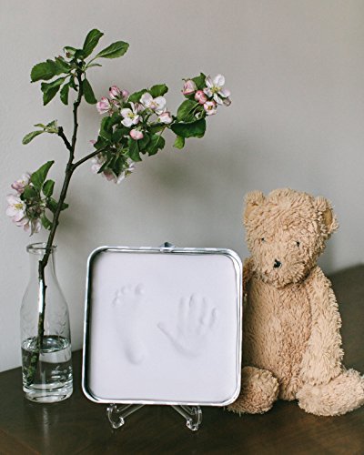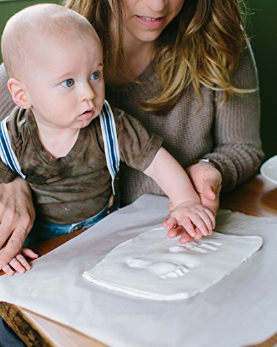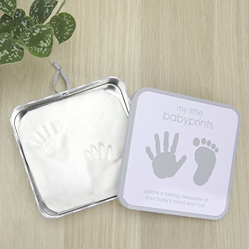 Pearhead's creative baby keepsake includes everything you need to create and cherish baby's tiny handprint and footprint. Kit includes: soft air drying clay, easel to display prints, and keepsake tin for safe storage.