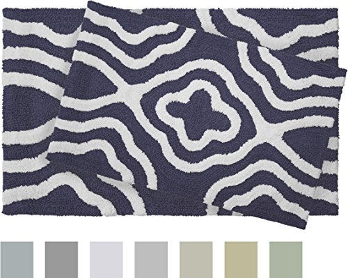 Jean Pierre Giri Reversible Cotton 2-Piece Bath Mat Set, Denim Blue