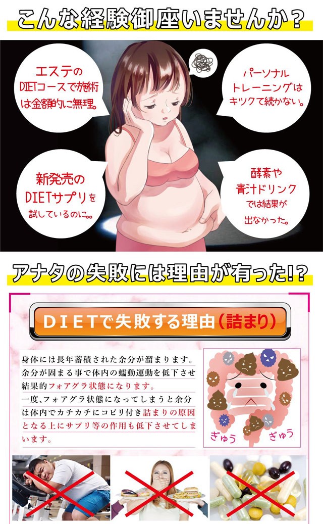 | 原材料 | マルトデキストリン、玄米麹、難消化性デキストリン、酒粕、ドロマイト、澱粉、食塩、生姜末、豚コラーゲンペプチド(ゼラチンを含む)、とうもろこし抽出物(セラミド含有)、豚プラセンタエキス末(豚肉を含む)、デキストリン、野草発行エキス(やまいも・リンゴを含む)/粘料(キサンタンガム、コンニャクイモ抽出物)、香料、微粒酸化ケイ素、甘味料(アスパルテーム・L-フェニルアラニン化合物) |