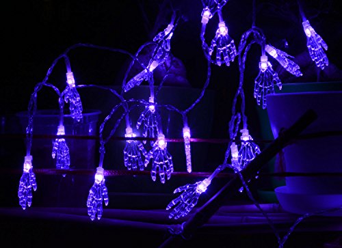 -. Feature : Halloween decoration,LED string lights perfect decoration for Halloween themed parties,thanksgiving day decorations,carnival,festival,celebration,bar decoration,home decorations and outdoor decoration and special occasion,novelty Christmas light / Color:purple,battery-operated,requires 3 AA batteries(Not Included),the battery box is not waterproof,so protect the battery box when you use it outdoors / 20 LED purple skeleton hand lights.Two modes switched to be chosen: steady/ flash / Low power consumption with a long service time,safe and reliable,energy saving and pretty performance easily to build a scary atmosphere / Each light is individually tested,it will arrive in good working condition.If there is any issue,please don't hesitate to contact us for support