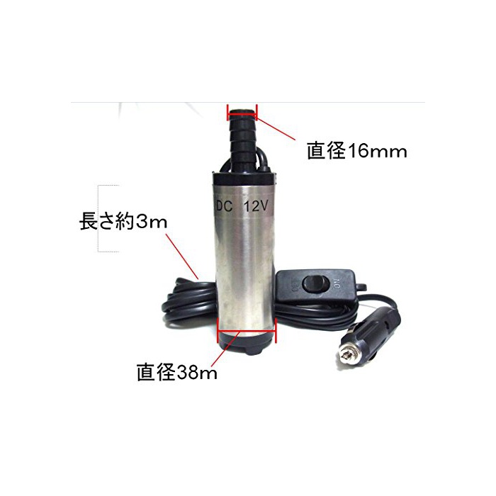 원본상품명:12v 小型 水中ポンプ ステンレス ケブル3m スイッチ式 水槽 海水 油 汚水 排水 給水 風呂
