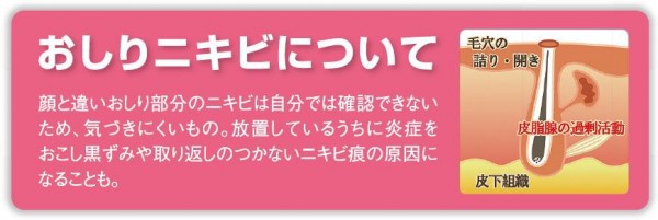 | 普段気づかない場所だからこそ、日頃からのケアをしっかりと!!薬用の有効成分がお肌を清潔に保ち、ニキビの原因菌を撃退します。 |