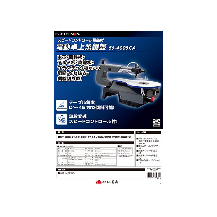 높음의(타카《기》) 높음의 EARTH MAN 스피드 콘트롤부 탁상 실톱반 SS-400SCA