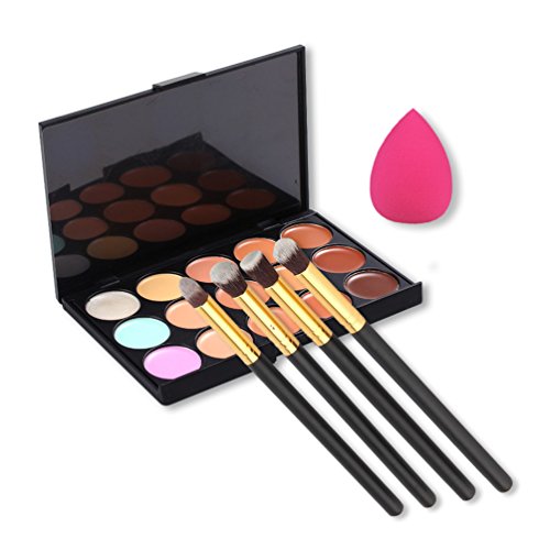 Package:15 Colors Concealer Palette+4PCS Brushes+1pcs Sponge Blender