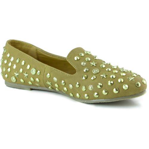 Binding : Apparel Product Description Stylish Ladies Designer Fashion Flat. Newest Loafer Style, Brand: Nature Breeze Product Code: Leila-14 Black Fashion Sneakers, slip on flats. Star studded Spikes all over. Rubber Outsole for non-skid purposes. Feel great in this new style, Nubuck Leatherette material flats. 0