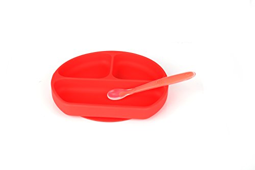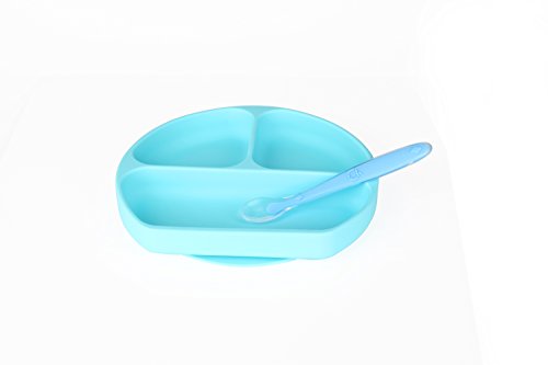 -. Feature : High quality: Mirenlife silicone baby feeding set is made of high quality 100% premium food-grade silicone, Lead, Phthalate, BPA, PVC and BPS Free, FDA approved , non-toxic, odorless, heat evenly, eco-friendly, reusable and durable. Does not absorb stains and odors. / Microwave, Oven, Refrigerator, Freezer and Dishwasher Safe. Temperature Safe from -40 to +446 degrees Fahrenheit (-40 to +230 degrees Celsius). / Easy to clean: Wash it with warm soapy water or put it into dishwasher, clean up is a breeze! / With the strong table suction cup, this baby feeding bowl will stay on place for entire meal time and avoiding mess. Great for toddler self-feed learning / training. / Fits most highchair trays. The size of divided suction plate is approx 8" * 7.2" *1.3.'' Package include: 1 * silicone bib, 1 * divided suction plate and 1 * silicone spoon.