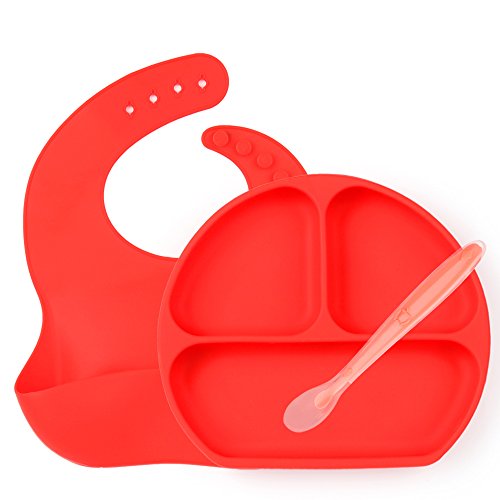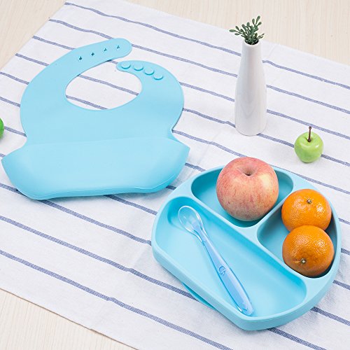 -. Title : Mirenlife Silicone Baby Feeding Set, Silicone Divided Suction Plate, Silicone Bib and Spoon, Great For Kids, Toddlers and Babies
