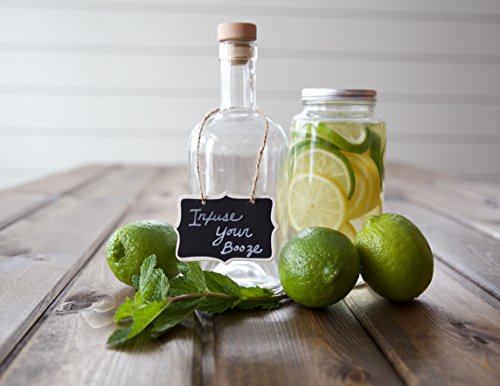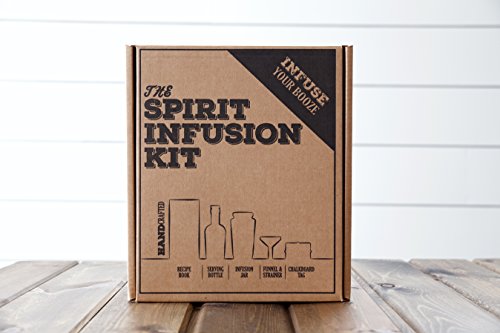 - INFUSE YOUR BOOZE! Everything needed to make your own all-natural handcrafted infused spirits: 110 Page Recipe & Instruction Book, 1000mL Infusion Jar, 750mL Liquor Bottle w/ Wood Cork Top, Funnel & Strainer with Fine Mesh Filter, and Chalkboard Tag to label your handmade creation.