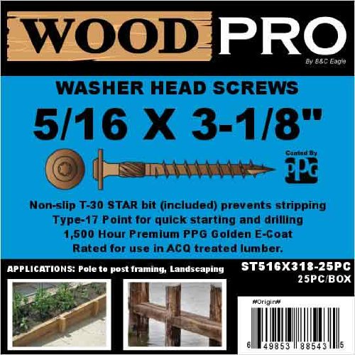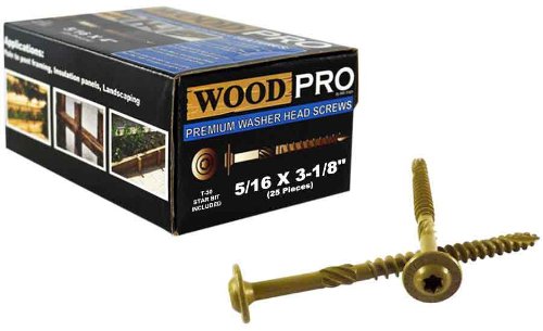 WoodPro Fasteners ST516X318-25PC 5/16-Inch by 3-1/8-Inch Length Round Washer Head Exterior Wood Screws, 25-Pack