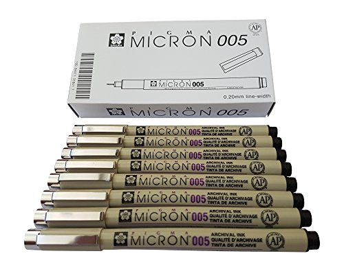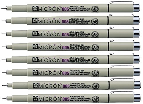 - Package includes : Micron 005 Black - 8 pens set (Manufacturer box not included)