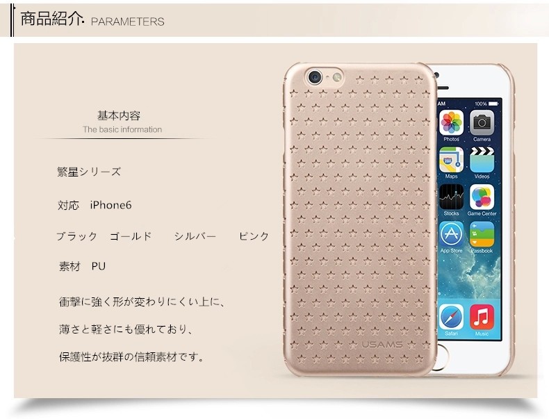 iphone6/6sハード 透かし星柄 ケース 軽い 薄い