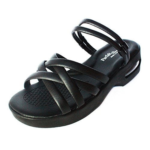 -. Feature : 人気のマルチストラップデザインで足が細く見える視覚効果。さらにエアソールでクッション性も抜群。 / 納得の日本製、こだわった手作業だからこそ実現できる2Way仕様のバックベルト。専用の留め具をスライドさせて、2Wayナースサンダルを実現。実務に嬉しい設計です。従来商品は留め具に不安要素が多いですが、日本製のハイクオリティで壊れにくい安心設計。脱ぎ履きの多い方、ナースサンダルを履いたままよく動く方に特におすすめです。 / 中敷きに凹凸があるので、軽刺激による足裏マッサージ効果。日常業務をしながらでも足裏マッサージが得られ、むくみ対策などに効果的。中敷き自体もやわらかい素材を使用しているので、優しいフィッティングも得られます。 / エアソールタイプ(片足重量約230g:Mサイズ)で着地時の膝などの負担を軽減。靴底は滑りにくいダイヤカット形状。強度な素材なので、かかと部分もすり減りにくいです。 / ヒール高:約55ミリで足長効果も◎。かかとからの独特の傾斜で足先先端へかかる負荷も軽減させるデザインを実現。看護師さんの動きを想定し、長時間履いても疲れにくい設計にし、見た目もスラッと魅させてくれるデザイン+機能に特化したナース用サンダル黒タイプです。