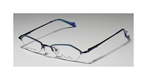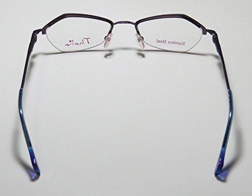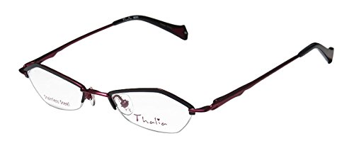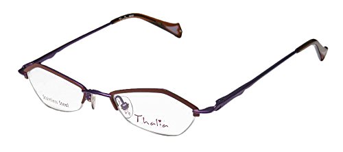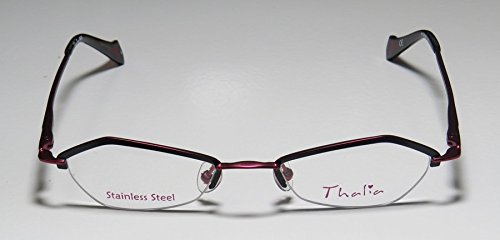 Brand: Thalia Style: Beso Gender: womens Frame Type: half-rim Frame Material: metal Case: original The frame is fully rx-able and can be fitted with prescription and/or tinted lenses at most optical stores. Please note that factory demo lenses have a logo stamped on them in ink. This frame provides comfortable fit and flatters a variety of face shapes. These eyeglasses are made of corrosion resistant and strong metal. The frame has spring hinges. Spring hinge temples prevent you from stretching the fit of your glasses and ensure that they remain intact and not become loose or out of shape. Original case is included. These eyeglasses retail for $130.00 at upscale stores that carry designer frames. Save your money and get them here! The pictures cannot fully reflect the beauty of this piece of designer eyewear. These eyeglasses look even more elegant in real life. This is one of the most popular Thalia styles on the market right now. 0 |