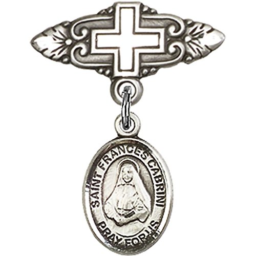 -. Title : Sterling Silver Baby Badge with St. Frances Cabrini Charm and Badge Pin with Cross 1 X 3/4 inches