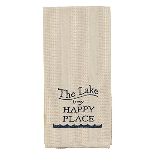 Cream The Lake is My Happy Place 19 x 28 Inch Embroidered Cotton Waffle Dish Towel