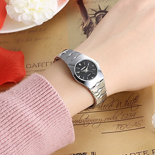 -. Title : Womens Mens Luxury Tungsten Carbide Quartz Analog Wrist Watch Waterproof - White Dial