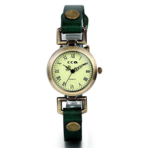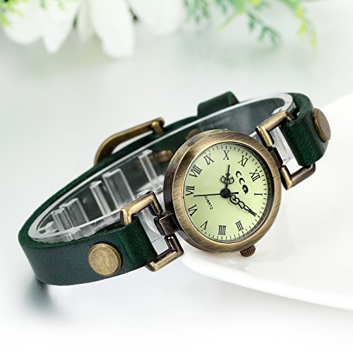 -. Title : JewelryWe Easy Reader Quartz Vintage Wrap Green Genuine Leather Strap Bracelet Watch Lady Women's Wristwatch