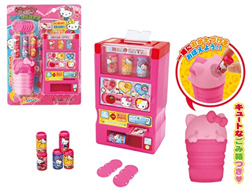 Set includes: Vending machine, garbage pail, 6 juice cans (3 types of juice), drink card and 6 coins
