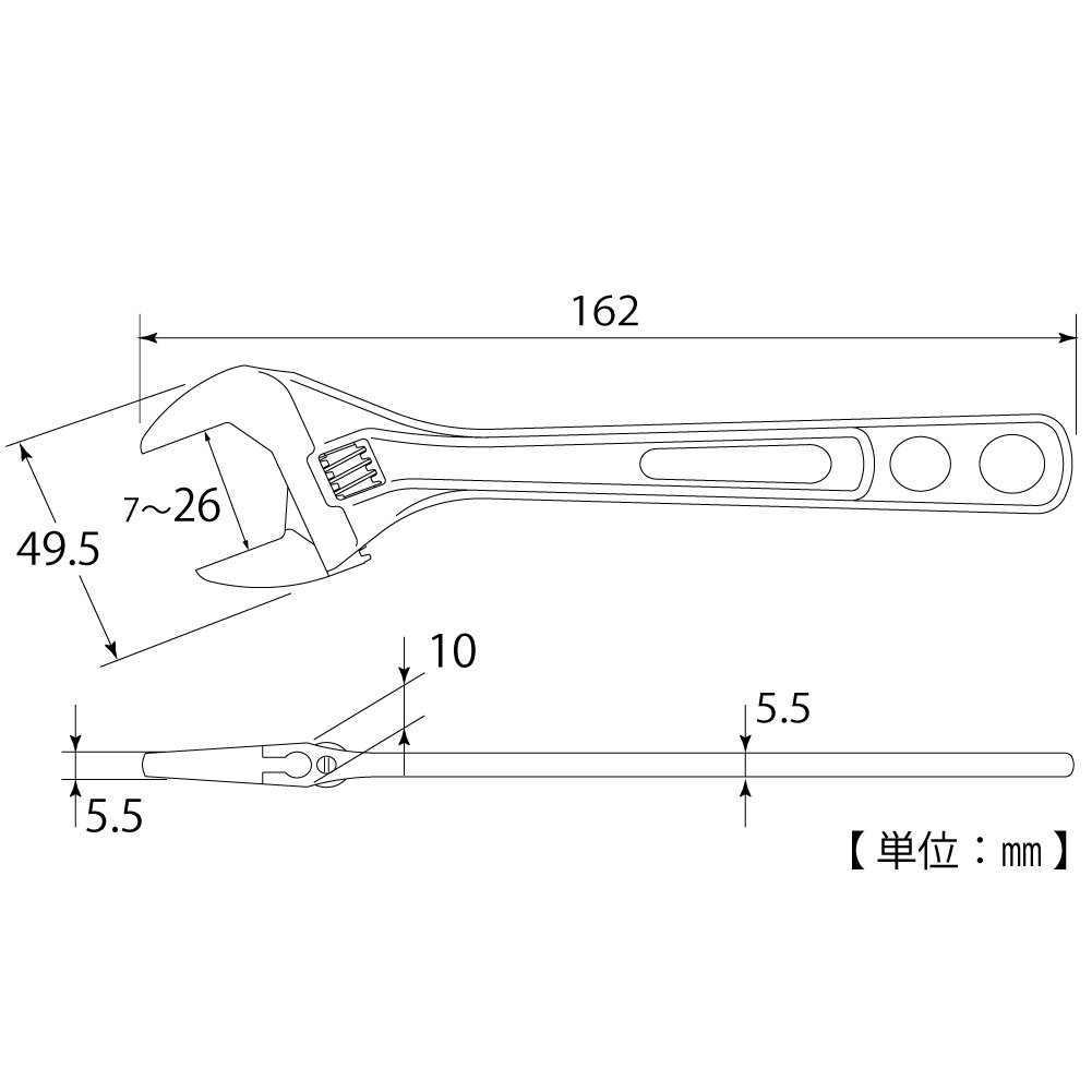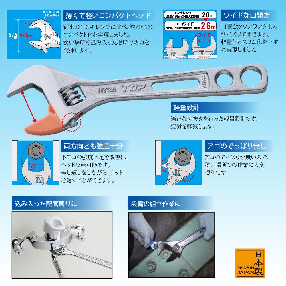 TOP thin type light weight wide monkey wrench eco wide 150 mm mouth opening size 7 ~ 26 HY 26 - 8743 【3095321】