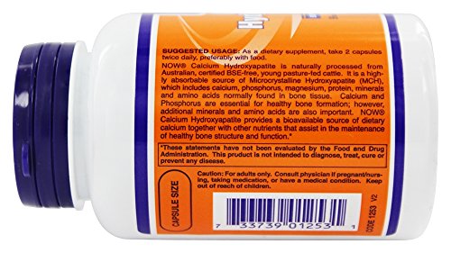 Studio : NOW Foods Publisher : NOW Foods Binding : Health and Beauty Product Description Calcium Hydroxyapatite Calcium rich, high collagen microcrystalline hydroxyapatite (MCH) forms the basis for this unique calcium supplement. MCH is the actual form of calcium found naturally in bone tissue. It provides both the organic and inorganic constituents found in the skeletal structure. 0