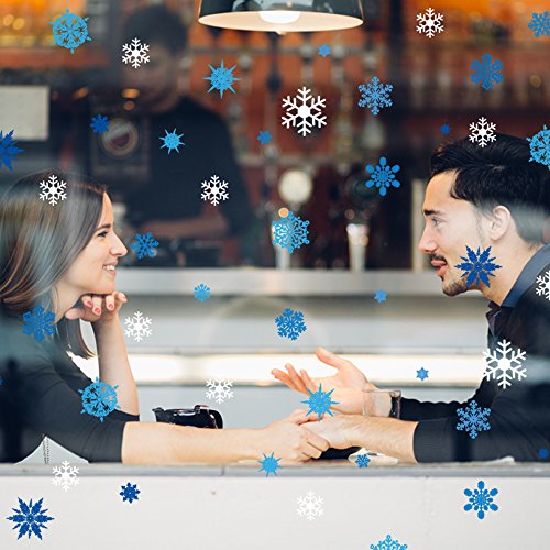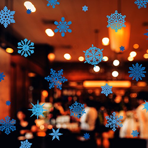Dktie Christmas Window Decorations Stickers Blue Snowflakes Stickers, Holiday Gifts Christmas Wall Decal Sticker (40cmx60cm, 75PCS snowflake) …
