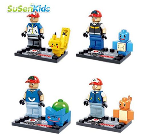 -. Title : 4 pcs/lot Pokemon minifigures building blocks action figures bricks Pikachu Charmander Bulbasaur Squirtle ketchum kids toys gift