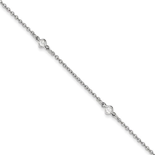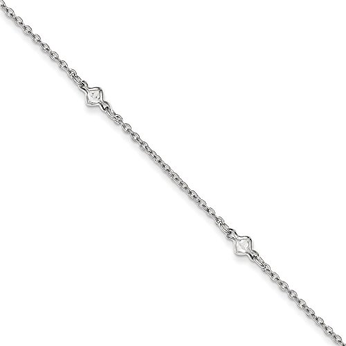 -. Title : Sterling Silver 9+ 1inch Ext 5 Fancy CZs Anklet - 9 Inch