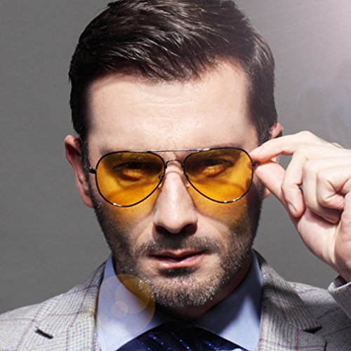 LOMOL Mens Fashion Cool Polarized Aviator Style Night Vision Goggles Driving Sunglasses