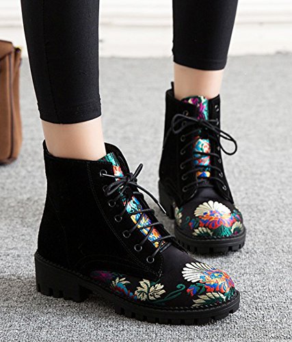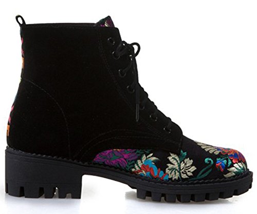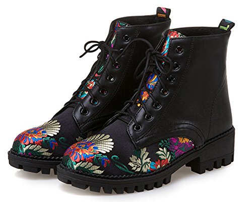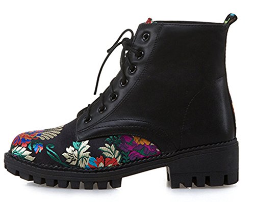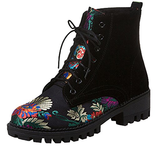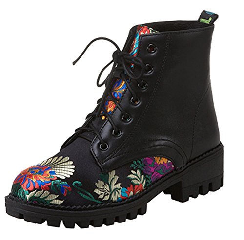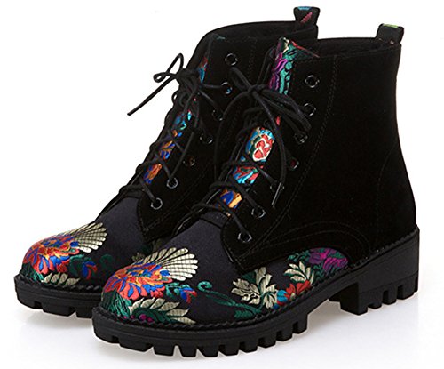 Binding : Apparel Product Description This pair of shoes is for women, girls, juniors and young ladies. You will look fashionable and stylish when wearing them. The heels and platform both measure 1.8 inches. The heel is block. So you will feel comfy when walking with them. This pair of shoes features waterproof upper and lace up. The design of round toe will make you look cute. The traditional embroidery. The sole is made of good rubber. You will feel comfortable in their soft bottom. They are of high quality and durable. 0