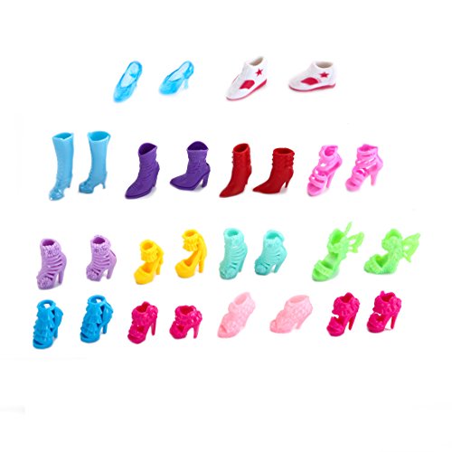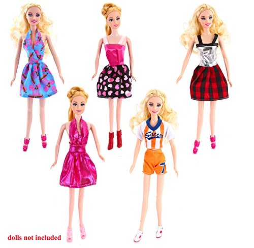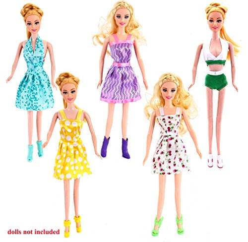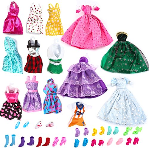 Super Value. Includes 10 Handmade Barbie Dresses, 4 Fashion Gown Dresses for Dolls, 14 Pairs Doll Shoes. All fit Standard 11.5 Inches (30cm) Tall Barbie Dolls. A Good Variety from Casual Dressing to Formal Party Dressing.Great Fun. Perfect as Doll Accessories. Affordable Fashion Dress Clothing Pack Perfect for Girls Doll Collection, Pretend Play, Imaginative Play. Perfect as Girls Party Favor, Princess Theme Party Gifts and Stocking Stuffers.