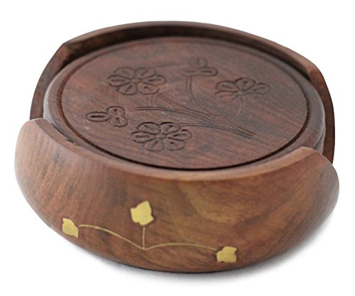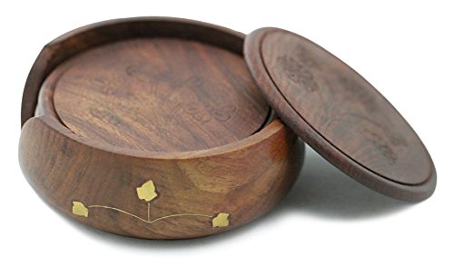 -. Title : Rosewood Drink Coasters - SouvNear Retro Wood Coaster Set with 6 Round Handmade Table Coasters and Decorative Wooden Holder
