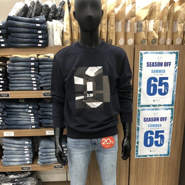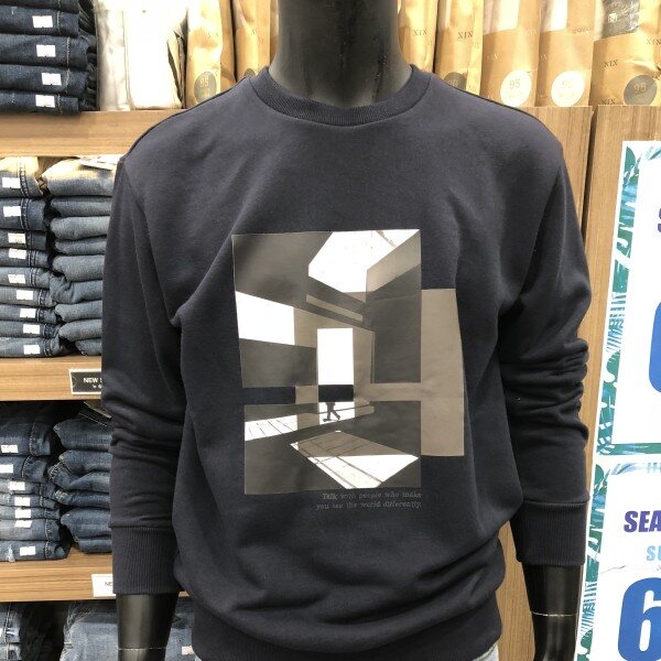 중앙에 가하학적인 느낌을 모티브로 한 전사프린트를 준 스타일리쉬한 느낌의 티셔츠