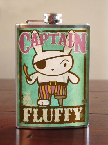 Drink up with our newest flask, "Captain Fluffy". Can a cute bunny be a pirate? Why not? Drink with style... Custom art on a stainless steel hip flask. How cool is that? Created by the artists, Trixie & Milo. These flasks are slim enough to fit in your hip pocket or purse, and stylish enough to show to all your friends! Makes an awesome gift for weddings, bridesmaids, groomsmen, or just birthdays, anniversaries, or the holidays. A perfect fashion accessory! Quality is our highest priority. All our designs are printed on a high quality vinyl label that is completely water proof (and alcohol proof). Each sticker is laminated under a UV resistant finish that will protect and enhance the image. These labels are NOT made with paper, or modge podge. Check out these features: High quality stainless steel construction. Attached screw down cap. Measurements; 3.75" x 5.75" Holds 8 oz. of fluid (yummie!) Image is protected by several layers of protective lamination. This means it will last a long time! Ships in a handy gift box, perfect for wrapping and ready to gift. To clean, just wipe it down with a damp cloth & dry. Not dishwasher safe. P.S. Actual alcohol is NOT included (sorry). You must provide your own beverage. This is for the flask only... All artwork is copyrighted and property of the artists, "Trixie & Milo".