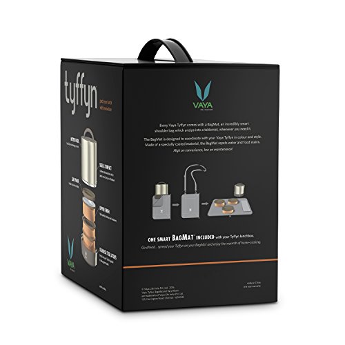 Introducing the Vaya Tyffyn 1000ml, a 3 container vacuum-insulated lunch box for carrying warm and fresh home-cooked meals. No more fighting for shared refrigerator space at the office or waiting for your turn at the microwave to reheat your lunch. The Vaya Tyffyn 1000ml lunch box ensures your food remains warm (or cold) for up to 4 - 5 hours after packing your meal and allows you to pack up to 6 dishes without mixing in our 3 individual leak-resistant containers.