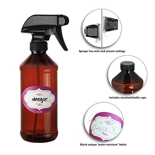 -. Title : Dilabee Pack of 3, 16 Oz. Refillable, Amber Plastic Spray Bottles for Cooking, Cleaning, Gardening, Aromatherapy, Natural Beauty Products - Includes Adjustable Spray Top And 3 Bottle Caps