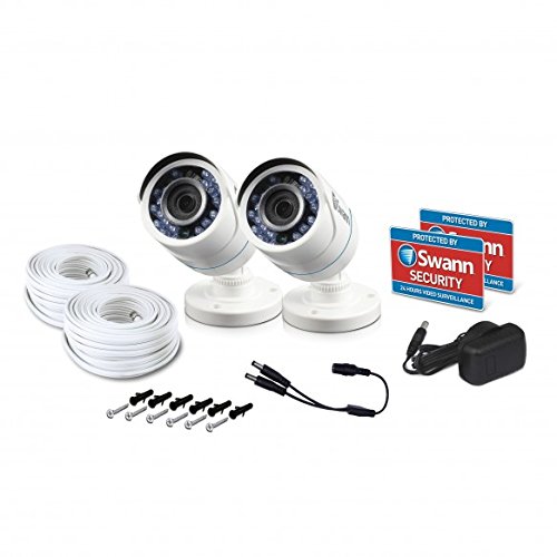 -. Binding : Electronics -. Brand : Swann -. Color : white -. EAN : 0840236105519 -. Feature : A state of the art surveillance camera with video technology equivalent to 720p / Seeing is believing with 2x 720p HD Cameras (1 Megapixel, equivalent to 1000TVL) perfect for most locations around home or business / Latest infrared cut filter for amazing night vision to 100ft/30m for amazing clarity in low light / Sturdy polycarbonate camera construction suits indoor & outdoor applications with IP66 rating for any weather conditions / These cameras can only be used in combination with Swann's Professional HD Digital Video Recorders including DVR4-4500, DVR8-4500 or DVR16-4500 for cutting-edge surveillance in HD -. Label : Swann -. Manufacturer : Swann -. Model : SRPRO-T850WB2-US -. MPN : SRPRO-T850WB2-US -. PackageQuantity : 1 -. PartNumber : SRPRO-T850WB2-US -. ProductGroup : Photography -. ProductTypeName : SURVEILANCE_SYSTEMS -. Publisher : Swann -. Studio : Swann -. Title : Swann 720P HD Bullet Security Cameras - Pack of 2 T850 Cameras, White - SRPRO-T850WB2-US -. UPC : 840236105519