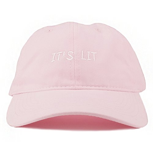 Title : IT'S LIT Embroidered 100% Cotton Adjustable Strap Cap - Light Pink