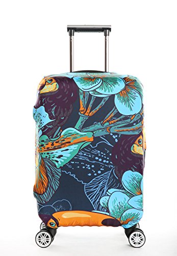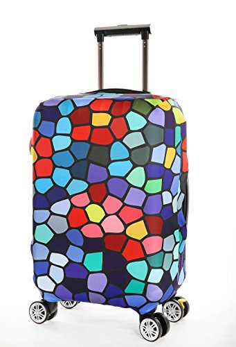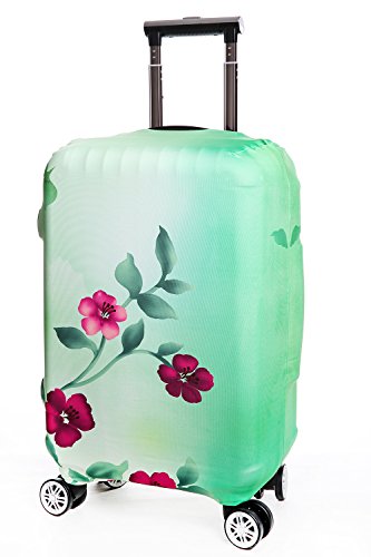 - This luggage cover fits the standard-sized check-in suitcase very snug as it stretches like spandex. It has an opening on the top and the side for handles. The bottom zips together between the wheels. - It does fit perfectly and nicely , the material of the suitcase cover is very stretchy and durable - The suitcase cover is really nice because it is made of a thick, stretchy but soft material, with a beautiful print.